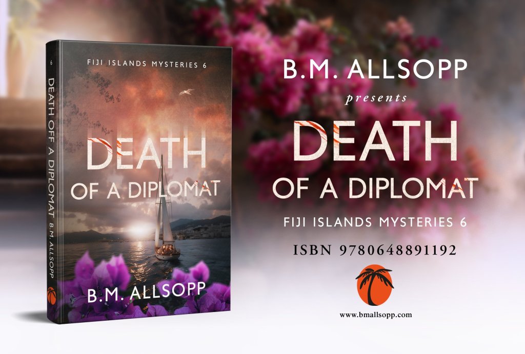 This has been a very busy spring. Among other things, I got to read an advance copy of “Death of a Diplomat”, the 6th volume of B.M. Allsop’s mystery series set in the beautiful islands of the Republic of Fiji, and starring her lovable cop Joe Horseman. I’ve enjoyed this series since the beginning, and the stories just get better.